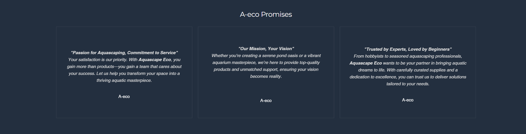 At Aquascape Eco, our mission is to inspire and empower Aquarist, Fish Keeper, Aquarium hobbyist or Aquascaping enthusiasts by providing premium supplies that elevate the art of aquatic design at competitive prices. We are dedicated to offering Top Brands and products that ensure every aquarium and pond becomes a stunning masterpiece. Through our commitment, quality industry partnerships and impeccable customer service, we strive to be the leading choice for those who seek the best in aquascaping. The presence of our logo ensures our endorsement of the service or product.